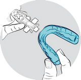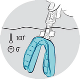 Mit dem Boil & Bite-Verfahren passt sich die Schiene individuell an das Gebiss an, für höchsten Tragekomfort.